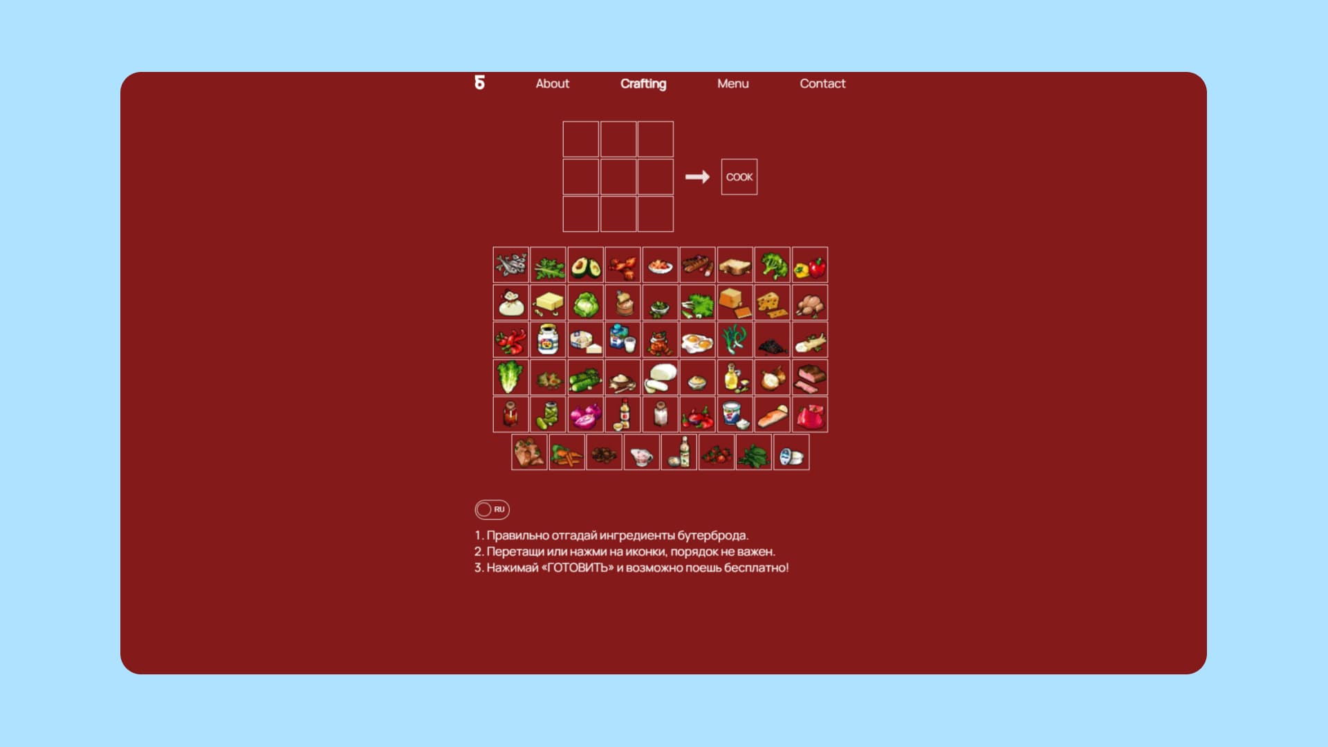Пример — игра от петербургского кафе «Бутербродная». В ней игрок должен угадать ингредиенты, из которых готовят бутерброды. Победитель может поесть в кафе бесплатно. Это пример того, как бизнес решает несколько задач: знакомит потенциального клиента с составом своих продуктов, вызывает интерес к меню, удерживает человека на сайте.