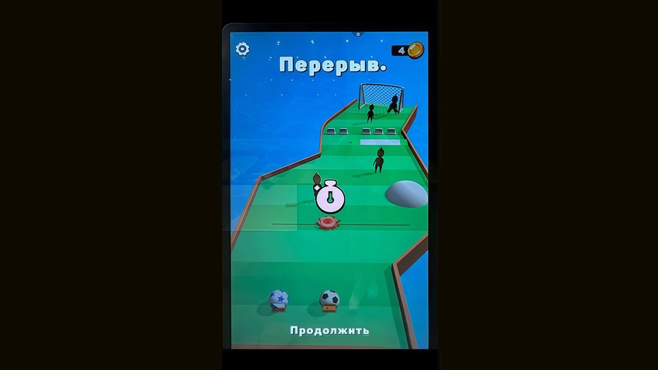 - Настроили управление: касание экрана замедляет время и позволяет нанести удар по мячу — сила зависит от расстояния пальца от мяча.