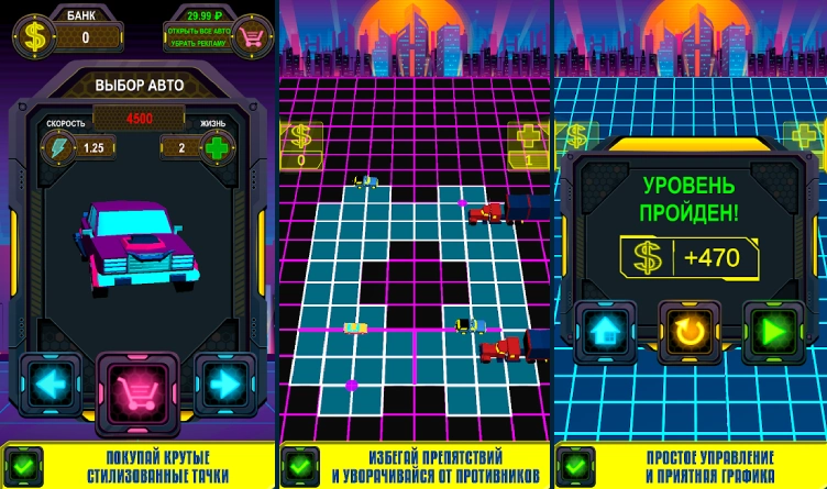 Неоновый путь – оригинальная головоломка, действия которой разворачиваются в ночном городе. Предстоит управлять различными автомобилями, усовершенствовать их, открывать новые, более сложные уровни. Отличная атмосферность и наличие большого количества опасностей сделают геймплей незабываемым и увлекательным. Несмотря на простоту графики, атмосферность поражает проработкой и уровнем погружения. Не отказывайте в удовольствии сразиться с искусственным интеллектом и покататься по ночному городу на крутых тачках.