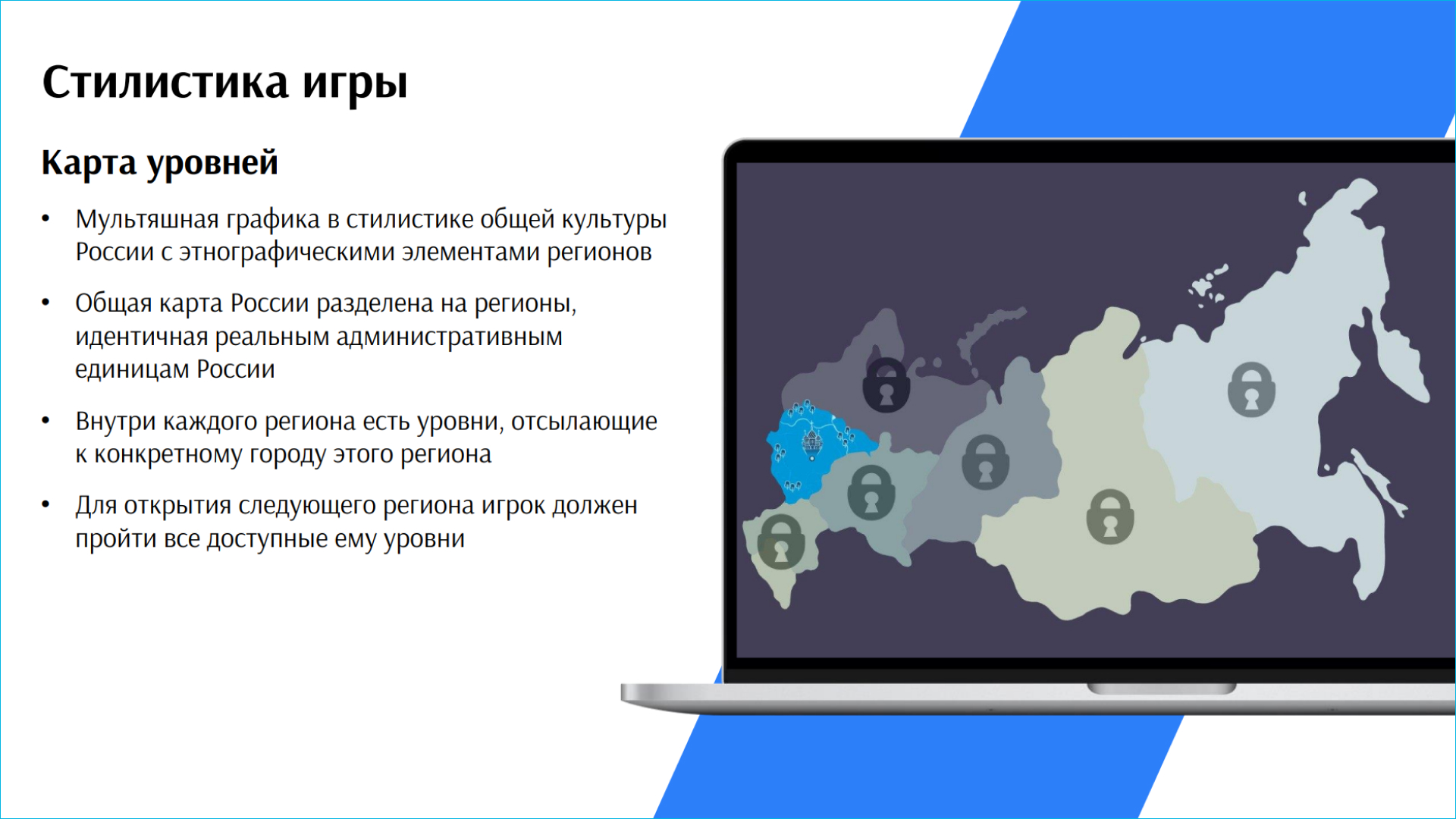 В этом кейсе мы расскажем о процессе создания такой презентации для игры «RUSтур» и покажем, какие элементы помогли раскрыть её возможности и интерес для аудитории.