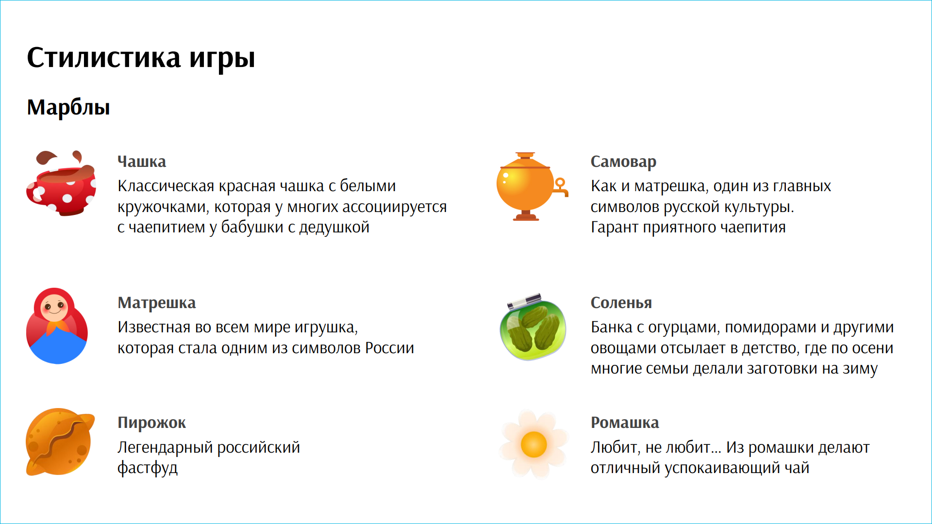 Мы создали ключевые визуальные элементы игры, такие как карта уровней и игровые фишки — марблы.