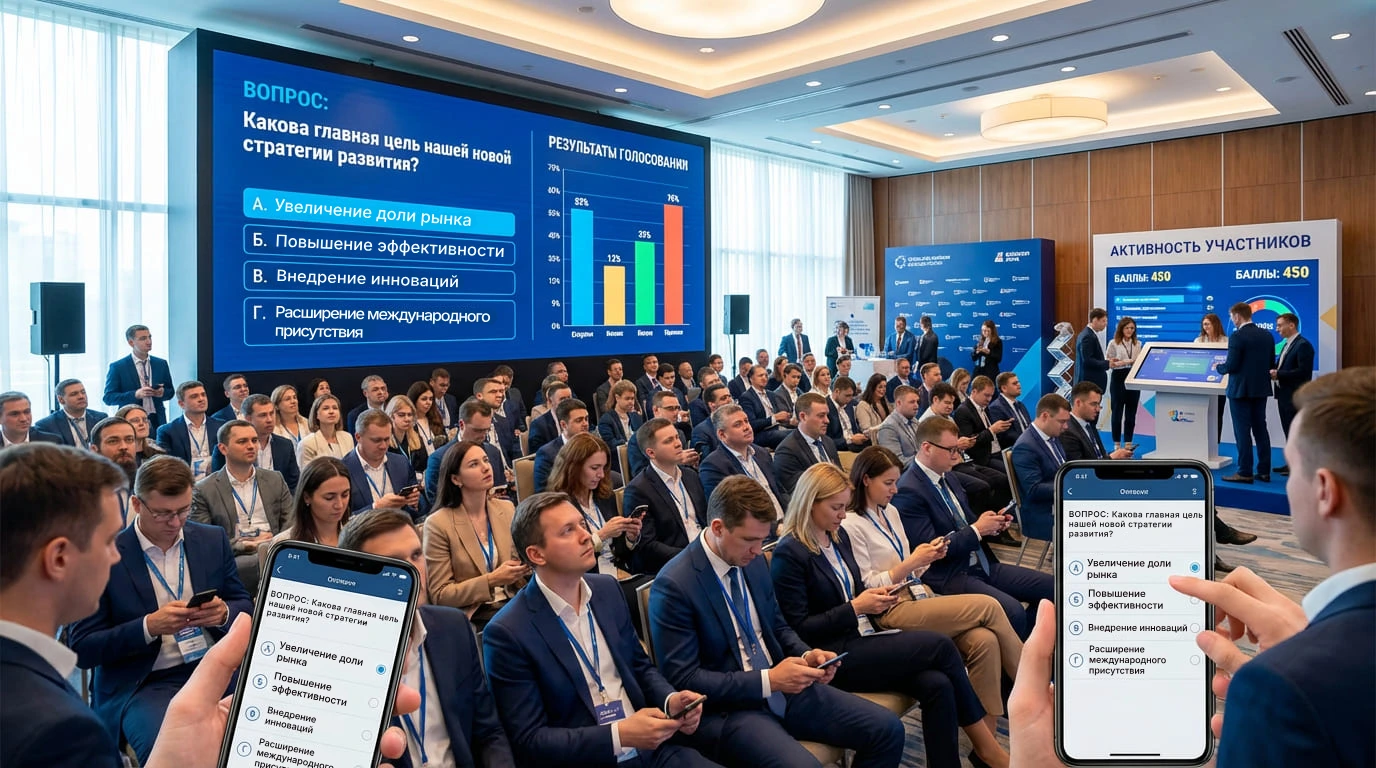 Квизы решают задачи вовлечения и проверки знания продукта. Это могут быть общие викторины по теме конференции, тесты на знание линейки решений или обучающие опросы с разбором правильных ответов.